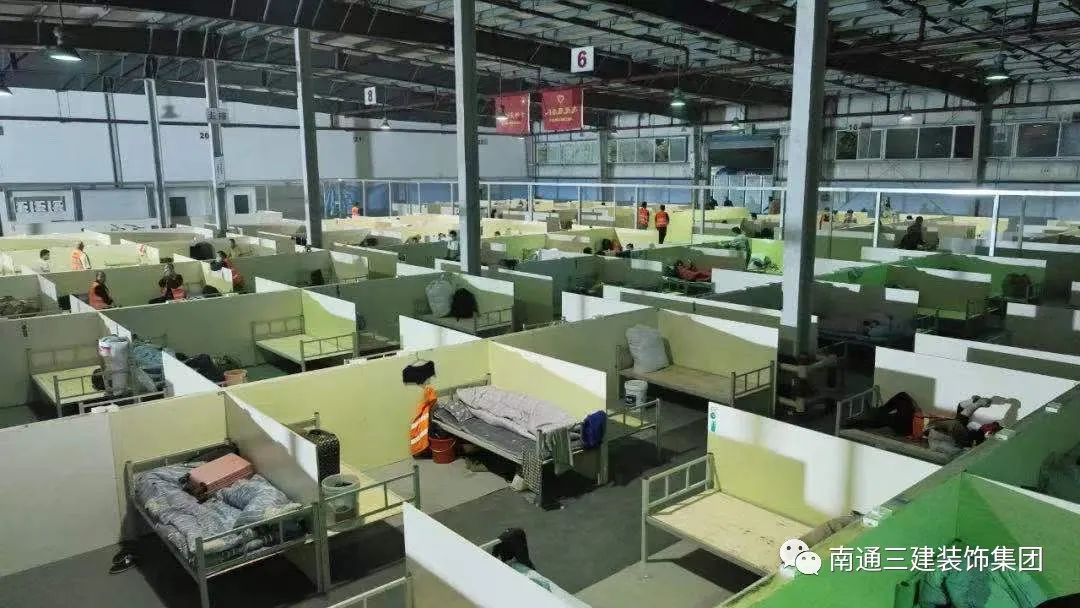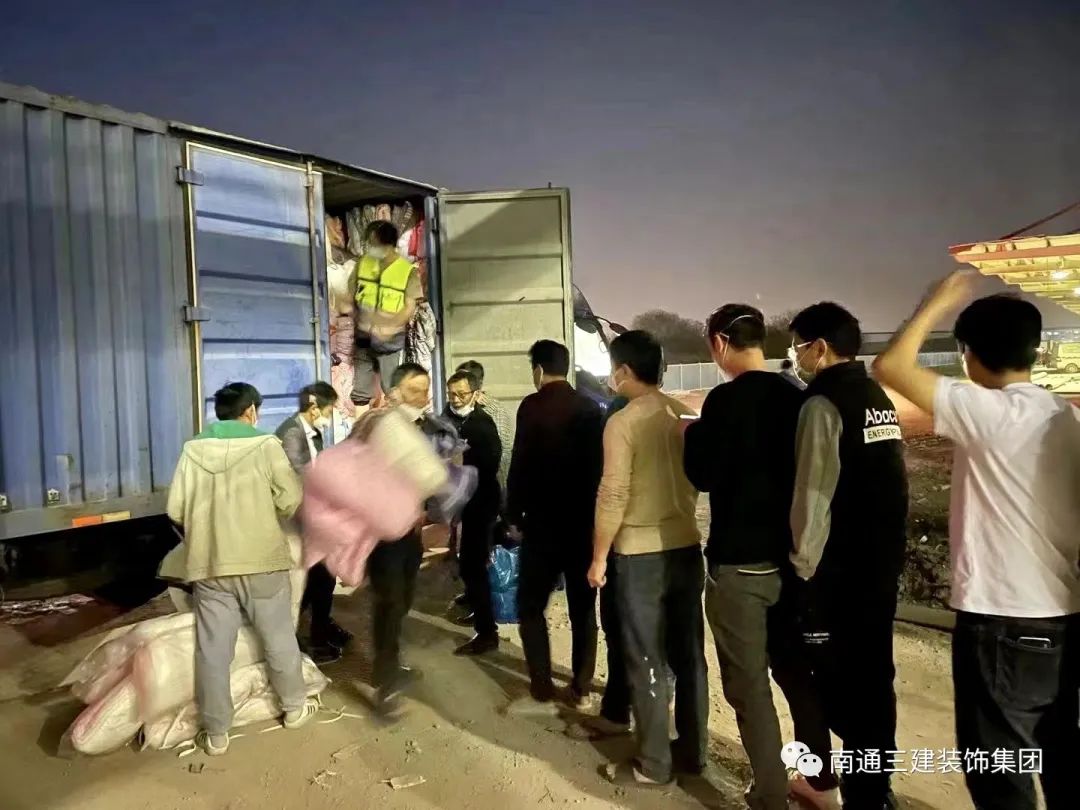 4月10日晚六點(diǎn),江蘇南通三建建筑裝飾集團(tuán)有限公司將300套床上用品及飲用水運(yùn)抵上海金山區(qū)滬杭公路方艙醫(yī)院建設(shè)現(xiàn)場(chǎng),分發(fā)到參與方艙醫(yī)院建設(shè)的該集團(tuán)的施工人員。